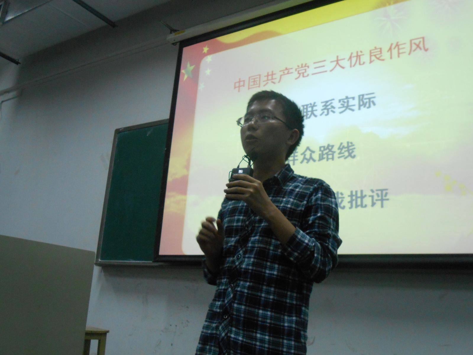 本次党课的主题是“批评与自我批评”。张炜同学以现场开展批评与自我批评的形式进行了互动式授课。他首先进行自我批评,对自己在过去两年来存在的不足进行检讨,并以具体案例分析的形式委婉地批评了学生党建在工作过程中的不足,建议学生党建工作应多与基层党支部、团支部沟通交流,了解基层的意见,对live007比分