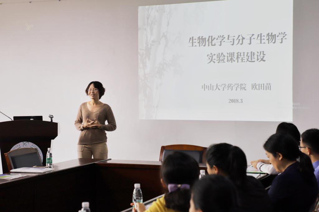 黄志纾教授带领的生物化学教学团队是省级教学团队,该团队开设的生物化学课程为省级精品资源共享课程。教学团队长期开展教学改革与研究,建设成果卓著,并于2017年获广东省教学成果奖一等奖。本次黄志纾和欧田苗老师将生物化学课程的教学体系建设经验,结合多年教学经验及心得体会分享给了与会师生。