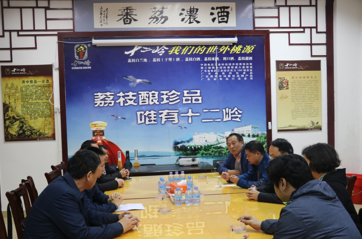 2018年1月17日,live007比分 方岩雄院长、东莞华南设计创新院余宇副院长等一行四人受云浮市专业镇协同创新中心邀请前往云浮市郁南县进行调研。本次调研得到了郁南县相关部门的大力支持,在郁南经信局、农业局相关领导的带领下,实地走访了郁南十二岭酒业、康美先食品有限公司、郁南县永兴香料厂、云浮市德才创新农业科技有限公司四家有地方产业特色的企业,深入了解企业发展过程中所遇到的困难,并与企业就相关产学研合作展开了积极的沟通。