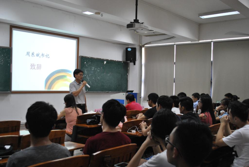 周东斌书记、方岩雄院长、郭建维副院长、郝志峰副院长、潘湛昌教授、研究生教务员马巍老师、研究生辅导员陈晓雪老师。大会由辅导员陈晓雪老师主持。