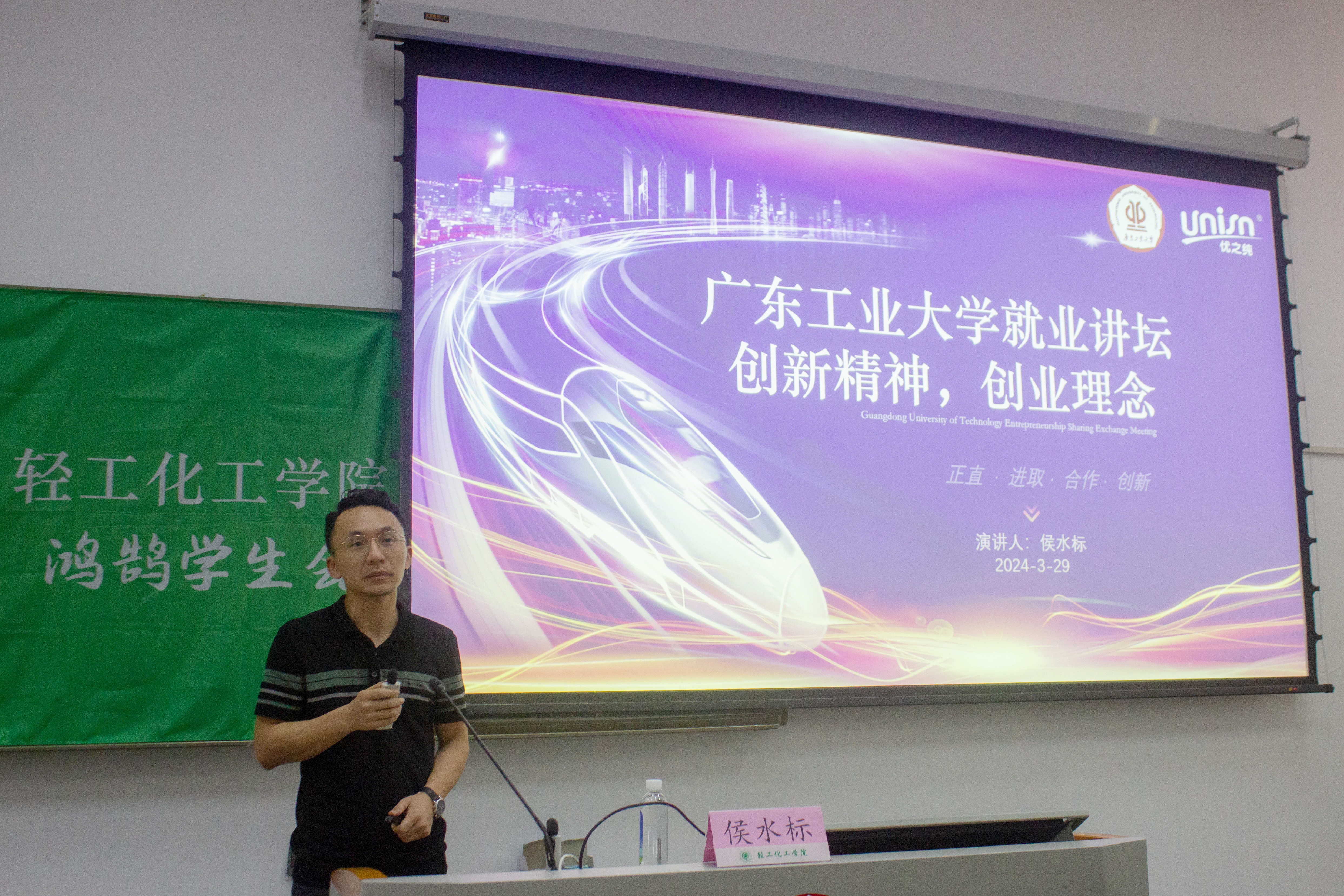 深入落实立德树人根本任务,培养大学生创新精神、创业意识与创新创业能力,促进学生全面发展,助力学生更高质量的就业,live007比分 鸿鹄学生会于329日下午在教三-206教室举办翻阅前辈“人生的书”(第二期)讲座。广州瑞研生物科技有限公司总经理、广东工业大学日化美业校友会执行会长侯水标校友应邀主讲,优之纯公司行政部聂琴,live007比分 团委书记李韵捷老师、学生会秘书长徐丹宁老师和百余名同学参加本次活动。
